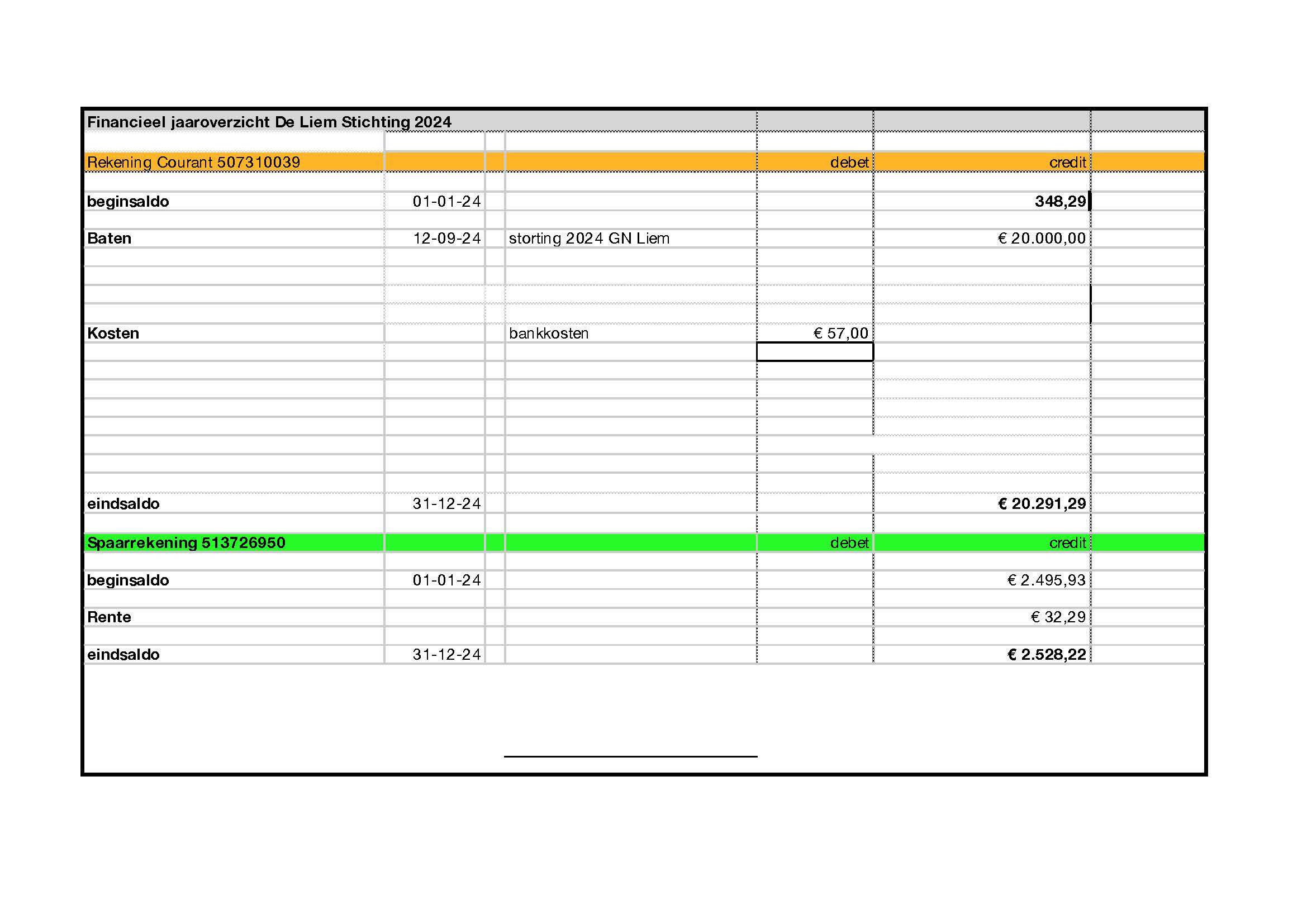 Doordat de groei van het vermogen om te doneren in 2024 minder was dan verwacht, heeft het bestuur tijd besteed aan het onderzoeken van de mogelijkheden om vaste doelen te ondersteunen. Eind 2024 was er een voorlopige lijst. Op deze voorlopige lijst staan doelen die ten goede komen aan de mens, de natuur (plant en dier) en aan cultuur. Deze doelen komen overeen met de doelen omschreven in de oprichtingsakte van de Liemstichting. In de loop van 2025 zal een besluit worden genomen v.w.b. de doelen op de lijst.
